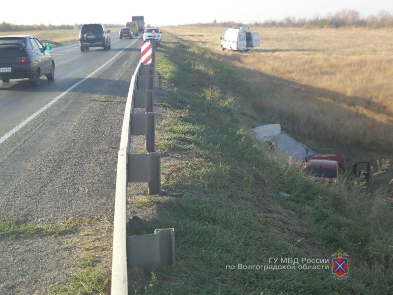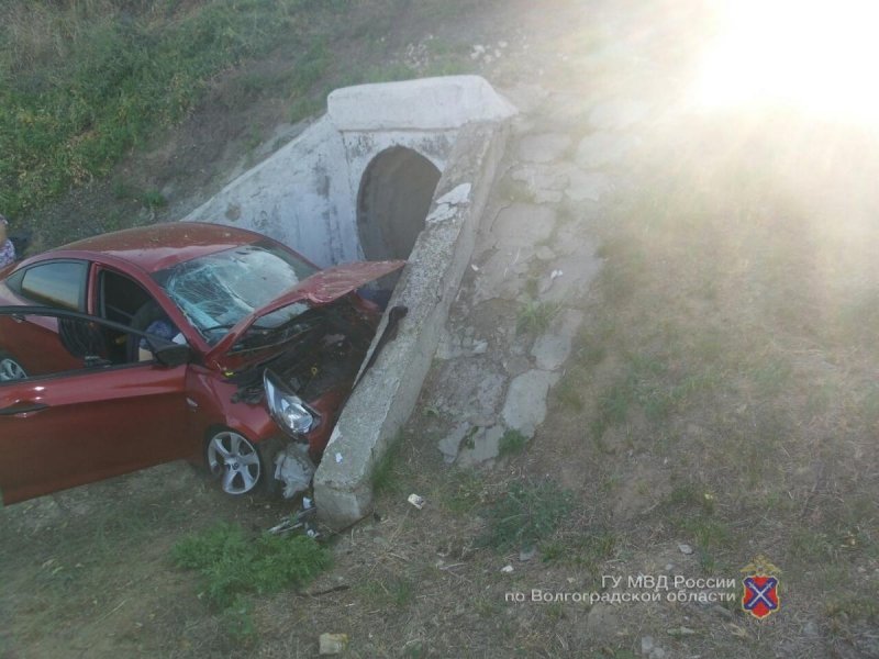 По предварительной информации, 41-летний водитель автомобиля Hyundai Solaris, ехавший из города Михайловка в Волгоград, потерял управление, выехал на обочину и допустил опрокидывание автомобиля в кювет, где врезался в десятиметровый бетонный водоотлив.