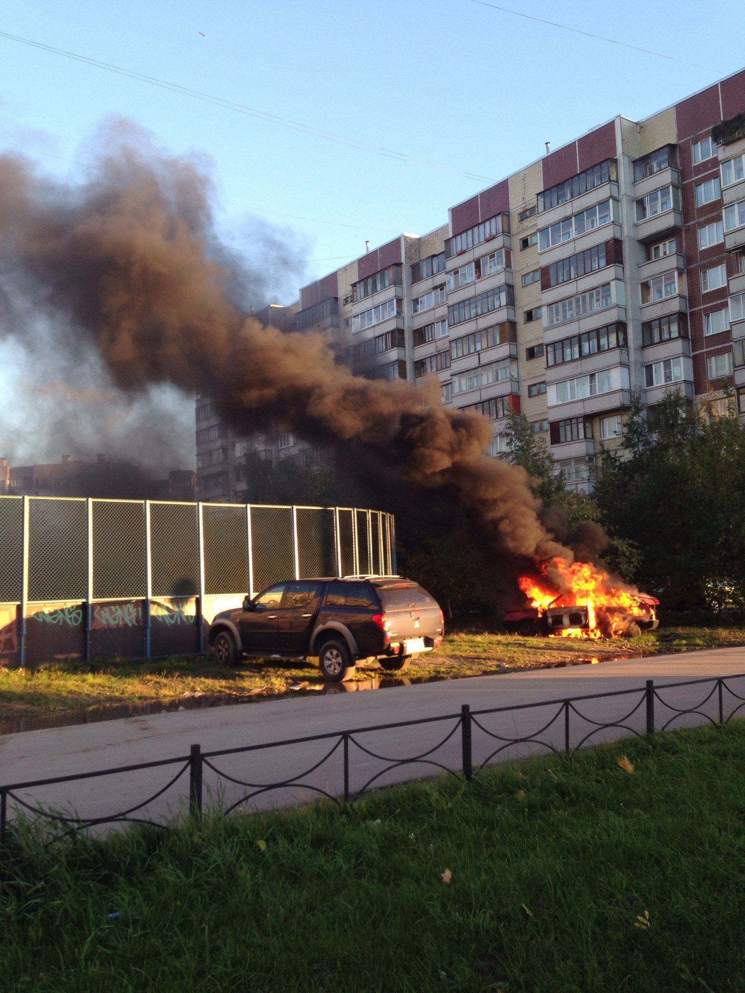 В субботу, 3 октября, на улице ул. Джона Рида горела «восьмерка». Сообщение об этом и фото с места происшествия появились в ВК-группе «ДТП и ЧП / Санкт-Петербург».