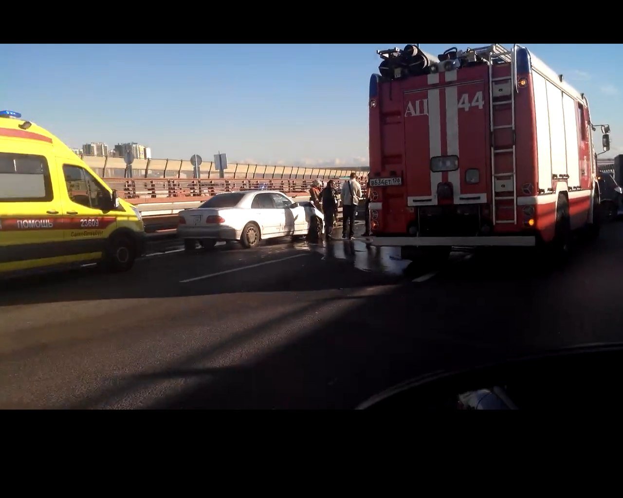 Массовая авария, в которой пострадали четыре человека, произошла утром 5 октября на КАД в Санкт-Петербурге в районе вантового моста в 100 метрах от съезда на Октябрьскую набережную.