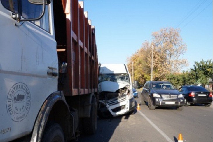 В Брянске маршрутка раздавила водителя мусоровоза