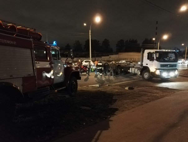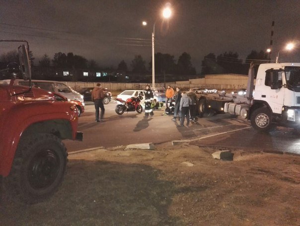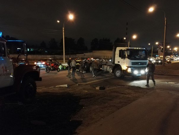 Авария случилась накануне вечером, 15 октября, около 20:00 на Митрофаньевском шоссе в Санкт-петербурге. Произошло столкновение мотоцикла и грузовика.