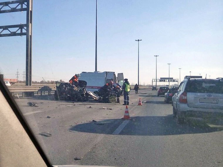 Авария случилась сегодня около 14:00 на 35 километре кольцевой автодороги на границе Красногвардейского района Санкт-Петербурга и Всеволожского района Ленинградской области.
