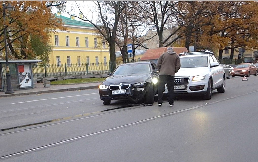 Неудачный разворот на Литейном проспекте завершился столкновением BMW и AUDI