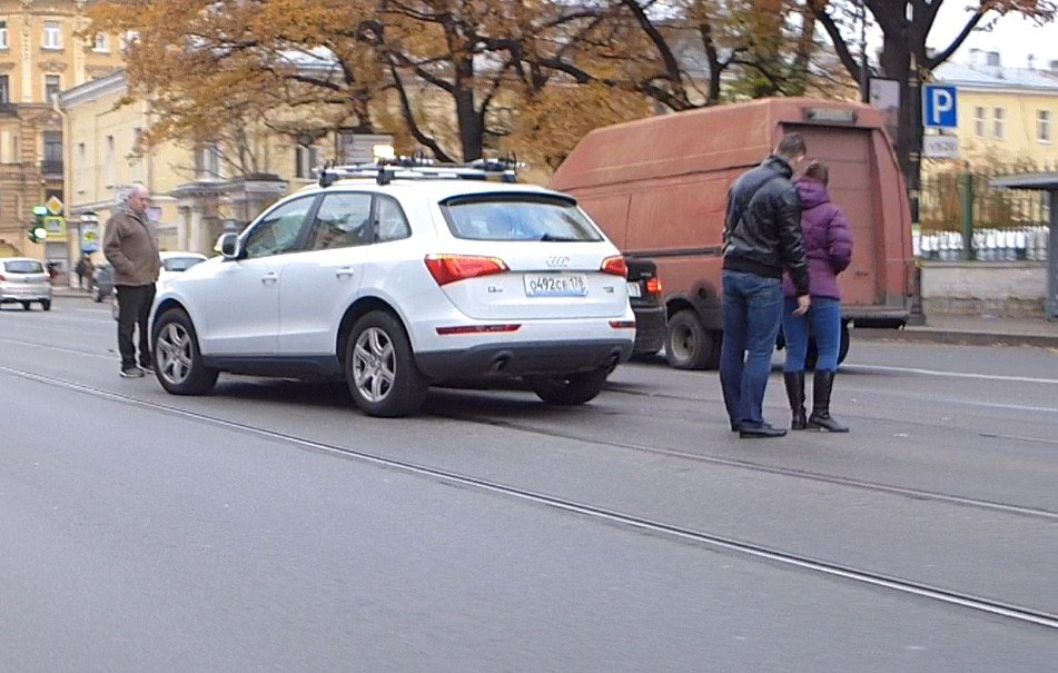 Водитель седана BMW 3 Series начал разворачиваться на Литейном проспекте не поглядев в зеркало заднего вида и не заметив ехавший здесь кроссовер Audi Q5. В результате таких действий произошло касательное столкновение автомобилей.