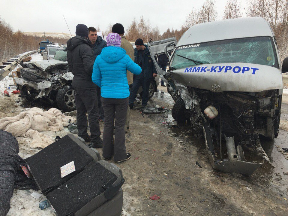По предварительной информации, микроавтобус Toyota Hilux с 11 пассажирами направлялся со стороны Белорецка в сторону Магнитогорска и по неустановленной причине выехал на полосу встречного движения, где столкнулся с автомобилем Lada Largus.