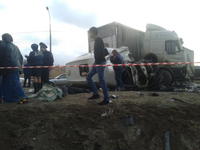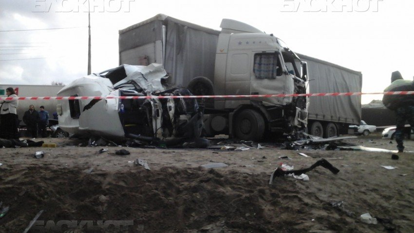 Сообщается, что произошло столкновение маршрутного такси «Газель» и фуры Volvo. По словам очевидцев аварии, грузовик на полной скорости врезался в маршрутку.