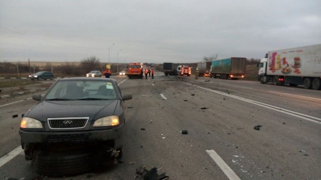 По предварительным данным, автомобиль Subaru Forester под управлением 20-летнего водителя выехал на полосу встречного движения, где столкнулся с грузовиком DAF. После удара фуру отбросило вправо, где она столкнулась с попутным автомобилем ВАЗ-2107, а отлетевшее переднее колесо DAF протаранило двигавшийся в попутном направлении Chery.