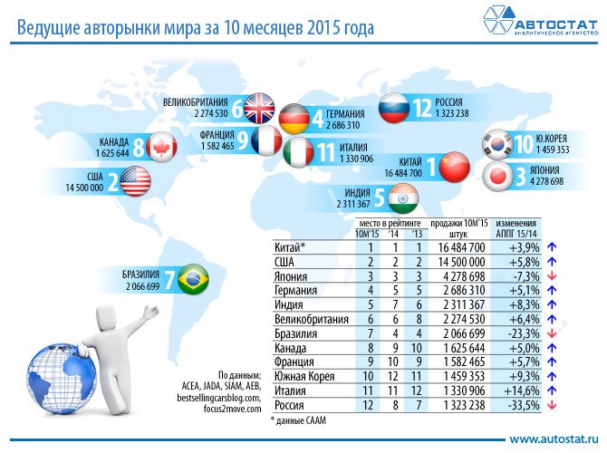 ТОП-10 крупнейших авторынков мира в 2015 году