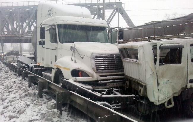 Произошло столкновение автомобилей «Газель» и ВАЗ-2107. Водители вышли из своих транспортных средств. В этот момент водитель большегрузного автомобиля Freightliner потерял управление врезался в попутный грузовик Mazda Titan, после чего на всем ходу снес стоящие на проезжей части автомобили «Газель» и ВАЗ.
