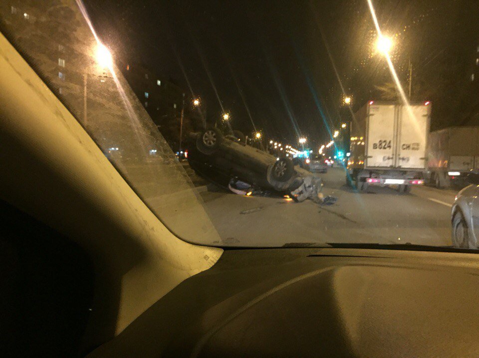 На дороге перевернулся внедорожник. По словам свидетелей ДТП, после аварии водитель вылез из автомобиля и убежал. Есть основания полагать, что он находился в состоянии алкогольного опьянения.