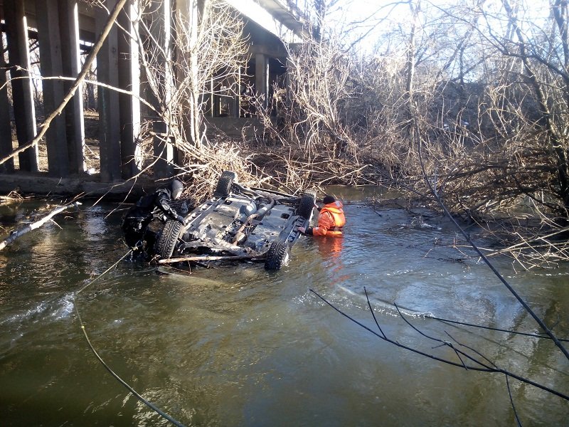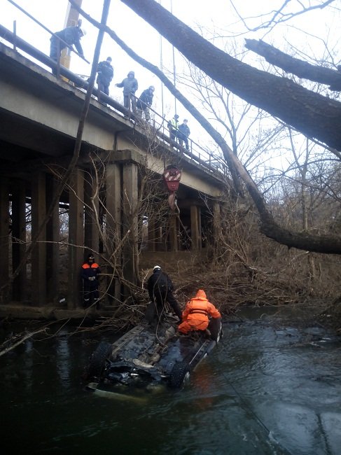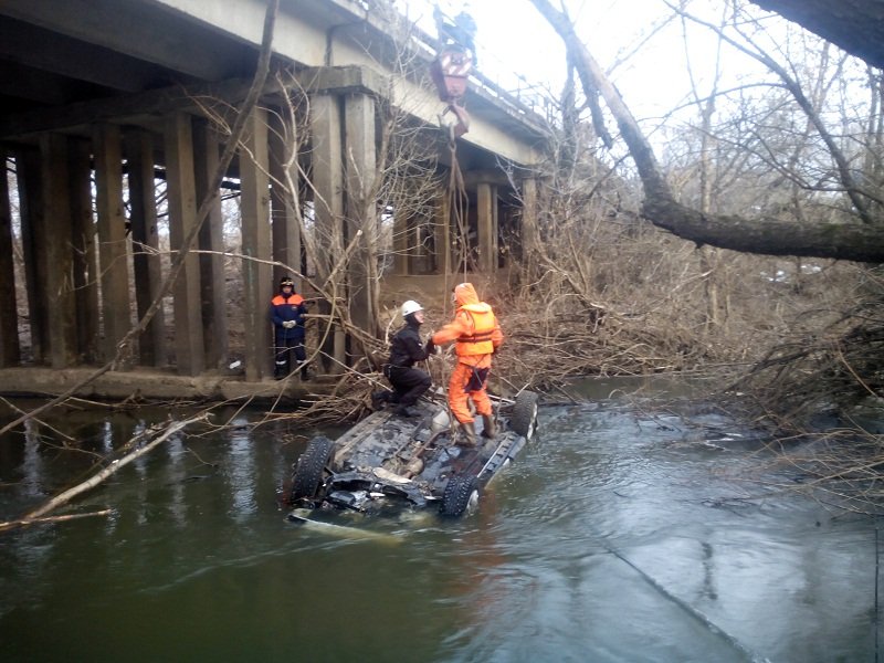 По неустановленным причинам водитель автомобиля потерял управление, врезался в трубу и упал с моста в реку.
