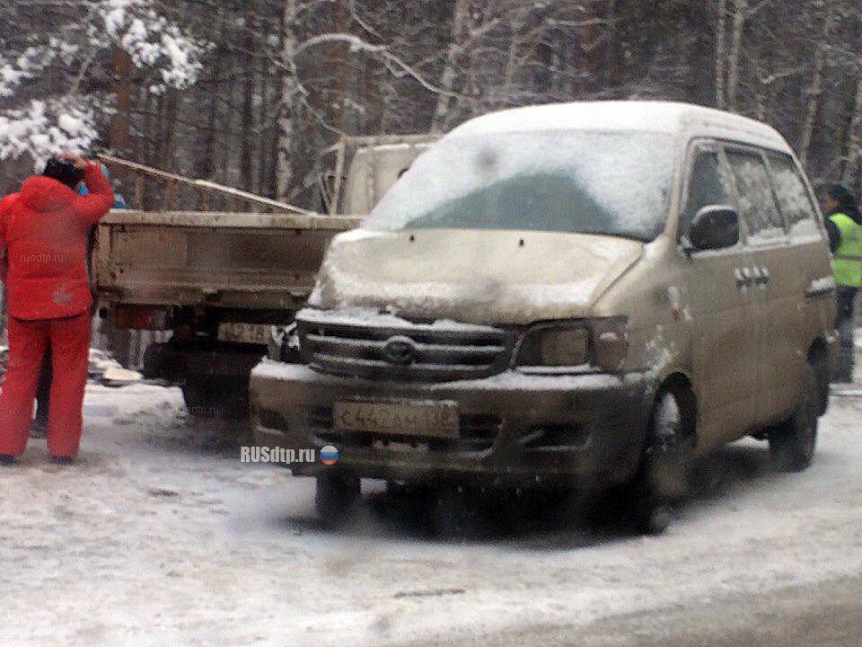 Водитель автомобиля ВАЗ-21015, двигавшегося со стороны Иркутска, по неустановленным причинам выехал на полосу встречного движения, где лоб в лоб столкнулся с автомобилем Toyota Dyna.