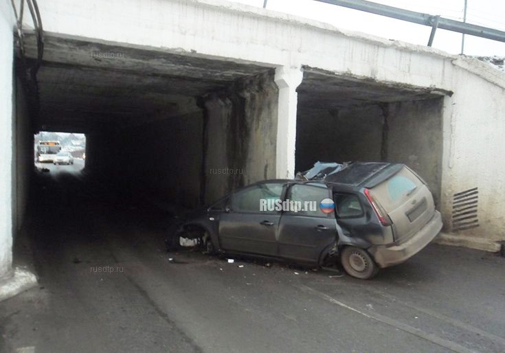 По сообщению портала «Русские дороги», водитель автомобиля Ford С-Мax потерял управление и врезался в опору путепровода.