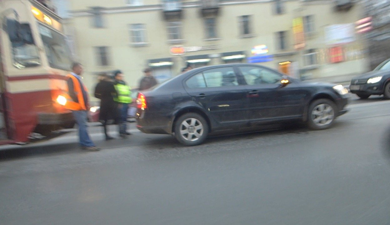 Неудачное маневрирование на трамвайных рельсах на проспекте Энгельса привело к ДТП