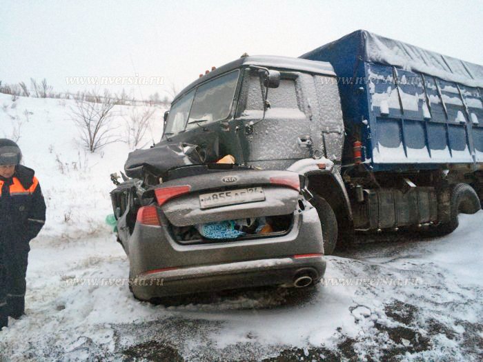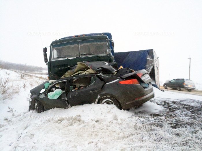 Страшная авария произошла 19 декабря в 14:40 на Вольской трассе, в двух километрах от объездной дороги на Базарный Карабулак в Саратовской области. При столкновении легкового автомобиля и КАМАЗа погибли четыре человека, в том числе маленький ребенок.