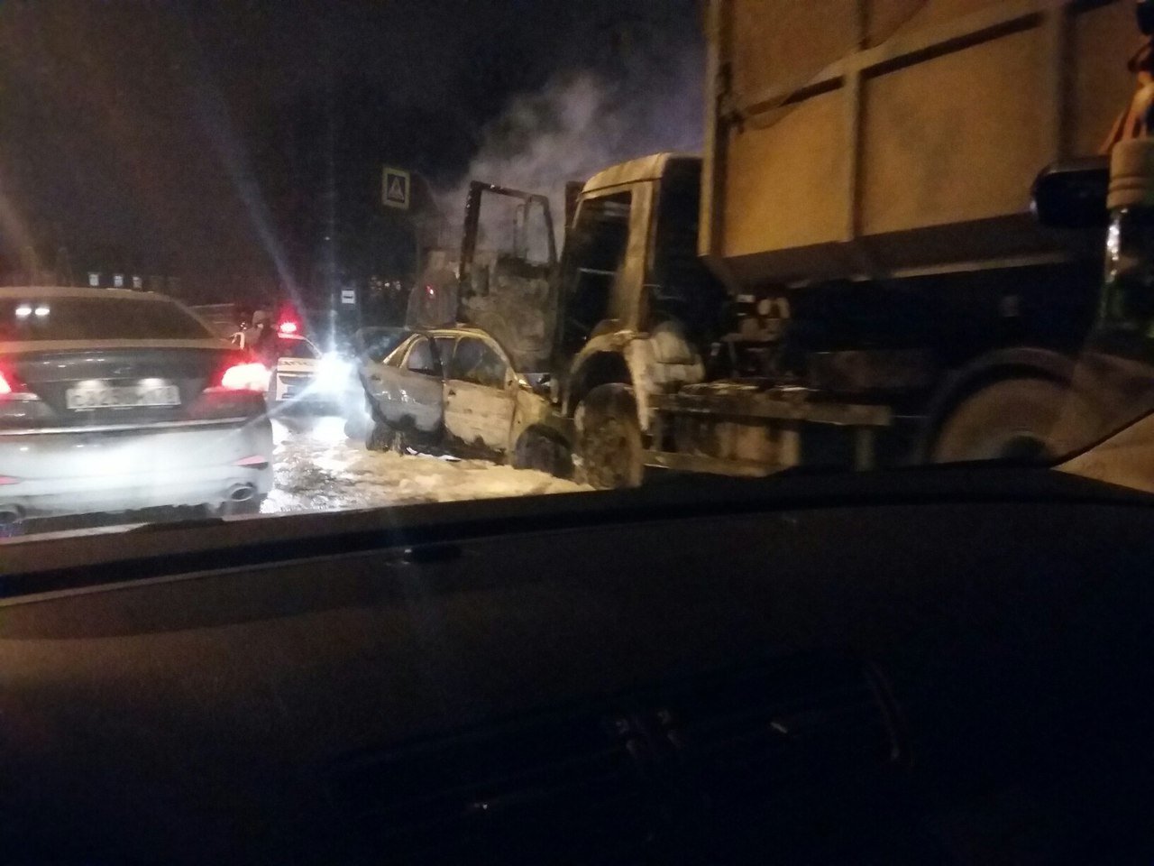 «Проезжала мимо, зрелище жуткое. Уже почти сгорели обе машины, а пожарных не было».
