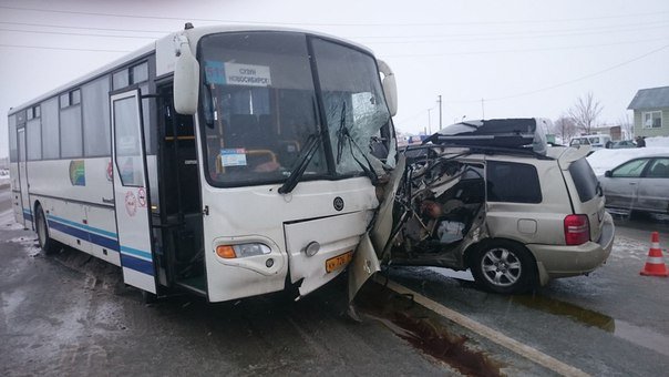На автодороге На М-52 произошла авария - столкновение сразу трех легковых автомобилей и рейсового автобуса. По предварительной версии, водитель внедорожника Toyota Higlander выехал на встречную полосу и столкнулся с автобусом, следовавшего по маршруту Сузун-Новосибирск. выезде из Бердска в сторону Искитима