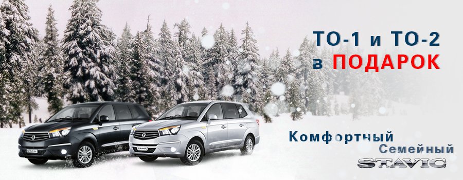У большой семьи всегда много дел, поэтому покупку автомобиля Автомир решил превратить в праздник! Теперь, приобретая SsangYong Stavic, Вы сможете бесплатно пройти ТО-1 и ТО-2. Выгодные цены, индивидуальный подход и сервис без хлопот – все что нужно, чтобы создать новогоднее настроение.