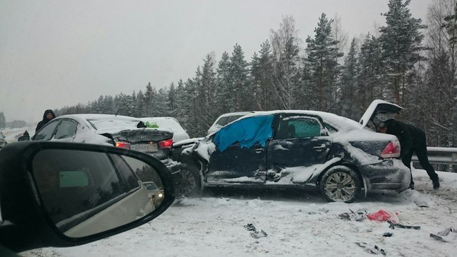 В воскресенье 3 января, около 11 утра, во Всеволожском районе на Новоприозерском шоссе по направлению движения от поселка Лемболово в сторону Санкт-Петербурга произошло массовое ДТП с участием 18 автомобилей.