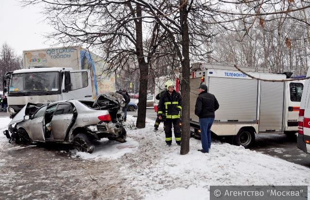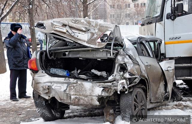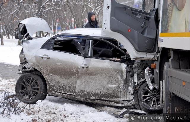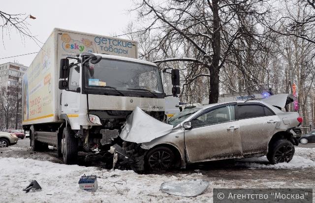 Смертельная авария произошла 8 января около 13:30 на перекрестке улицы Дегунинской и Коровинского шоссе в Москве. При столкновении грузовика и легковушки погиб человек.