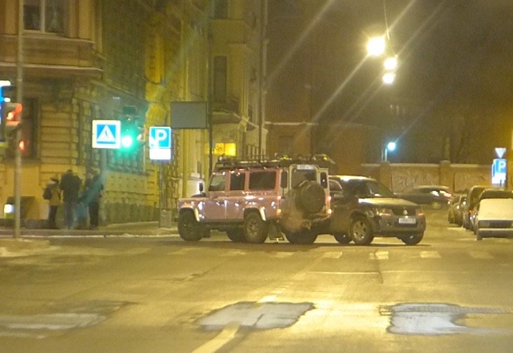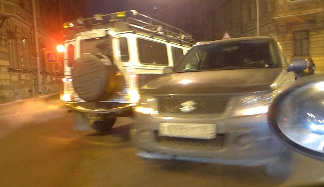 И опять неудачное маневрирование водителей двух внедорожников привело к досадному ДТП на пересечении Ковенского переулка и улицы Радищева. За рулем Suzuki Vitara можно было видеть молодую женщину (без намеков на то, что авария случилась по её вине, а просто как факт).