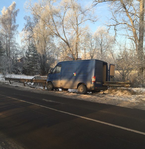 Водитель фургона Mercedes-Benz Sprinter на скорости 80 км/ч хотел объехать неровное дорожное покрытие, но автомобиль занесло и он влетел в отбойник. Перекладина пробила моторный отсек автомобиля, пронзила салон насквозь и вышла наружу в задней части автомобиля.