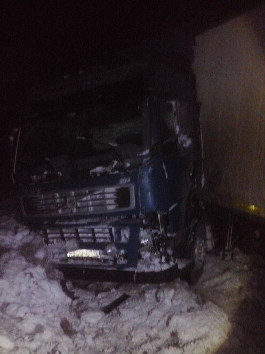 По предварительной информации, водитель грузового автомобиля Volvo допустил занос полуприцепа и последующий выезд на встречную полосу, в результате чего фура столкнулась с легковым автомобилем Toyota.