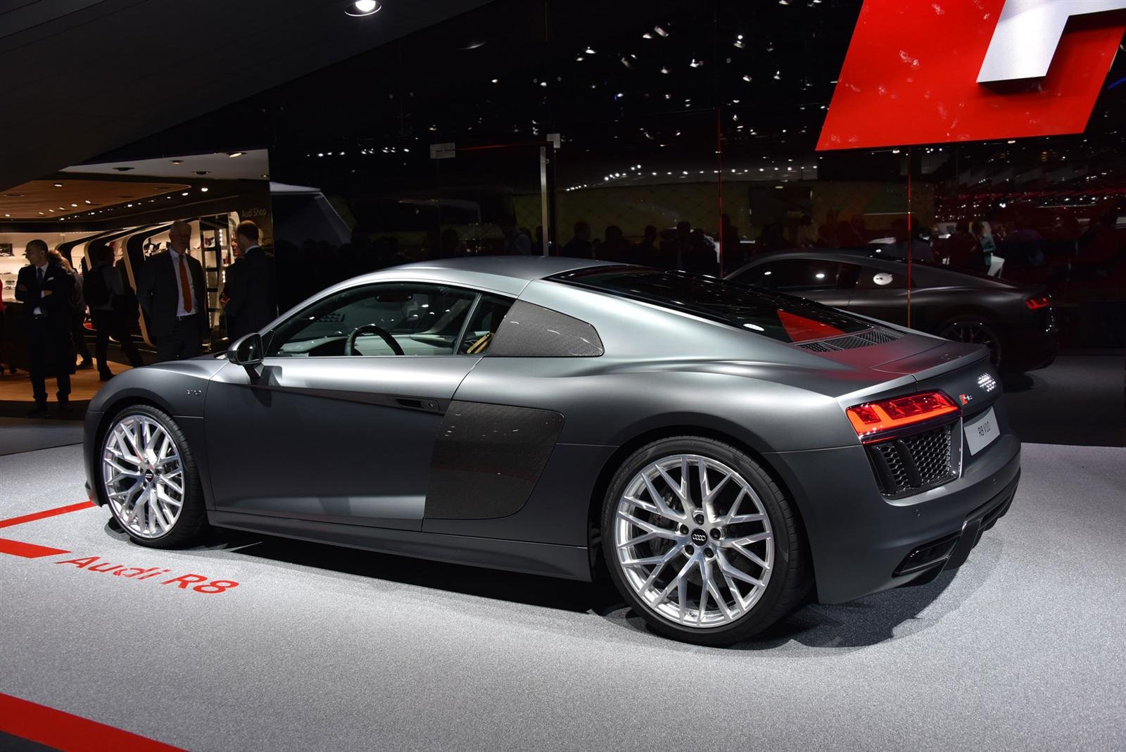 Модифицированный вариант R8 получил 5,2-литровый двигатель V10 мощностью в 540 лошадиных сил и крутящим моментом в 389 Нм. Работает мотор в паре с 7-ступенчатой трансмиссией с двойным сцеплением.