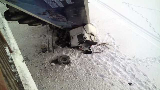 Авария произошла сегодня, 26 января, около 11:40 возле поселка Кайгородово в Сосновском районе Челябинской области. После столкновения с легковым автомобилем ВАЗ с моста упала фура.