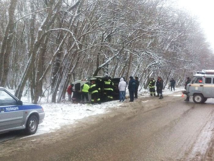 По предварительной информации, водитель междугороднего пассажирского маршрутного такси не справился с управлением, и машина опрокинулась в кювет. В момент аварии в салоне маршрутки находилось девять человек.