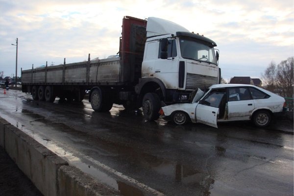 Смертельная авария произошла накануне, 1 февраля, на мосту через реку Проню в Пронске Рязанской области. При столкновении легковушки и грузовика погибли два человека.