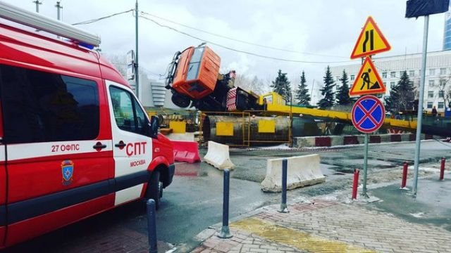 Автокран упал на проезжую часть в Москве