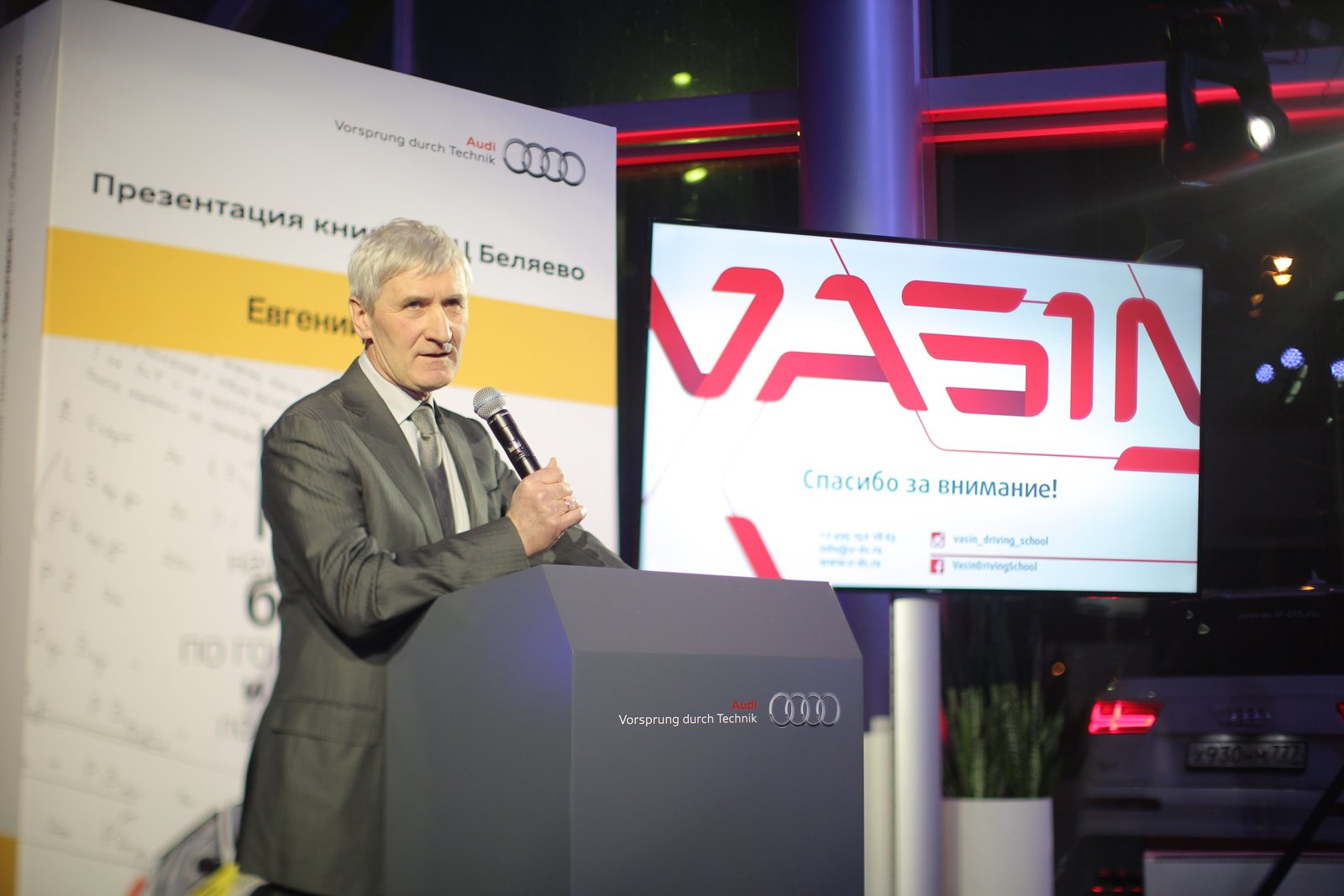 11 февраля в шоу-руме официального дилера Audi АЦ Беляево, входящего в состав Группы компаний «АВТОРУСЬ», состоялась закрытая презентация книги одного из самых титулованных раллистов России Евгения Васина. Бессменный руководитель легендарной «Школы quattro» (на сегодняшний день Vasin Driving School) и заслуженный мастер спорта адресовал свою книгу тем, кто хотел бы раскрыть для себя профессиональные тайны управления автомобилем в любых условиях.