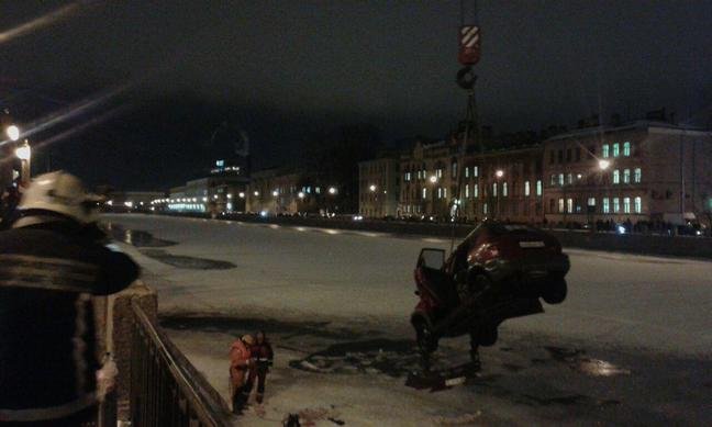 В четверг, 18 февраля, около семи часов вечера в Санкт-Петербурге под лед реки Фонтанки провалился автомобиль.