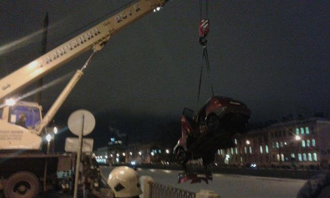 В Фонтанку снова упал автомобиль