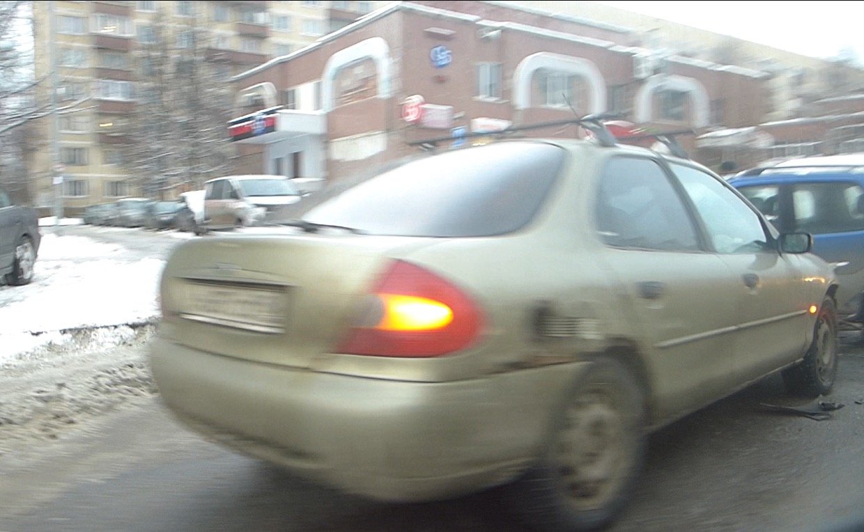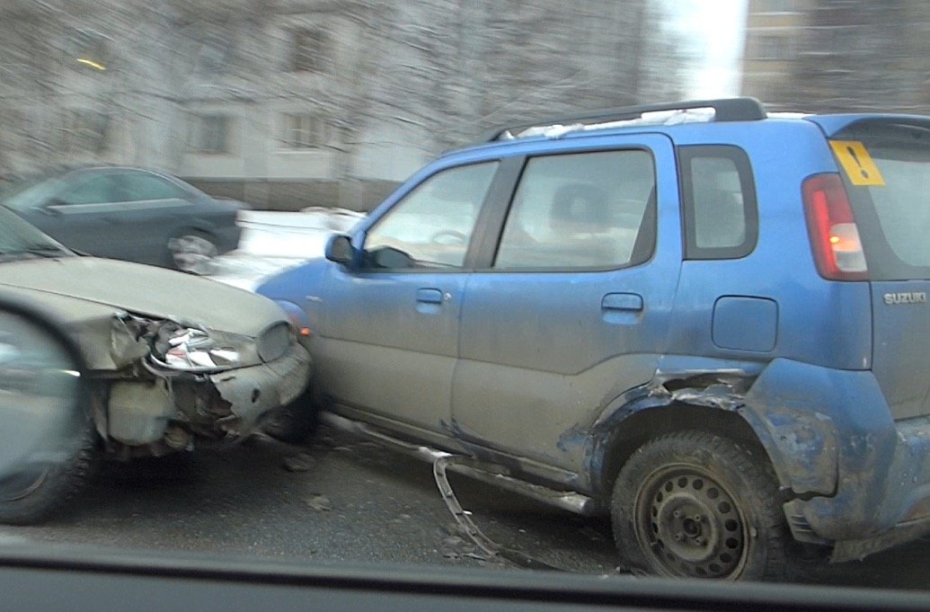 Авария на улице Жени Егоровой на повороте в дворовую территорию случилась во второй половине дня 23 февраля - седан "Форд Мондео" врезался в хэтчбэк Suzuki Ignis с наклейкой, обозначающей то, что за рулем "неопытный водитель". Обстоятельства неизвестны. Похоже на банальное взаимное непропускание водителями друг друга.