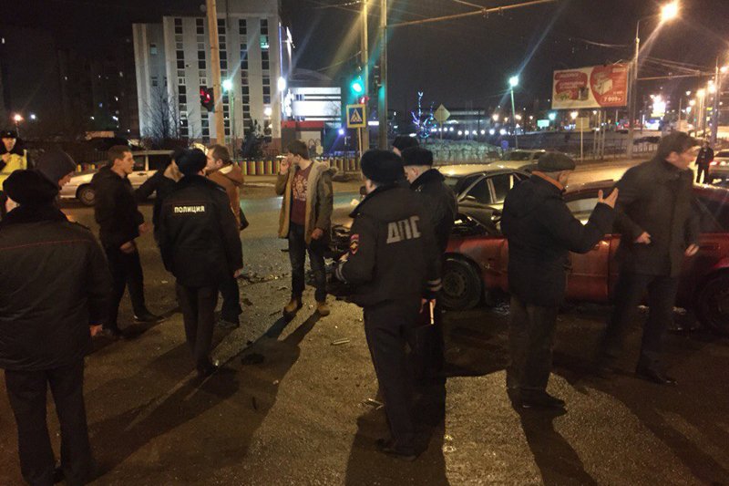«Вчера в 23.12 приличный замес на регулируемом перекрестке у 45-го магазина. У нашемарки серебристого цвета подушка сработала, нет левой стороны. У красной ино разбита правая сторона в хлам. Наблюдал аварию спустя 10 секунд после удара. У пассажира ино, в него удар пришелся частично, повреждена нога, рука. Машина ППС, и три ДПС, плюс скорая на месте. Заэвакуаторили обоих в час ночи».