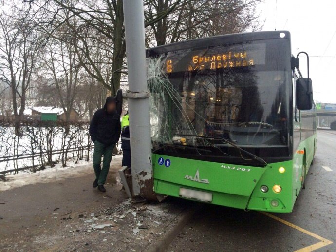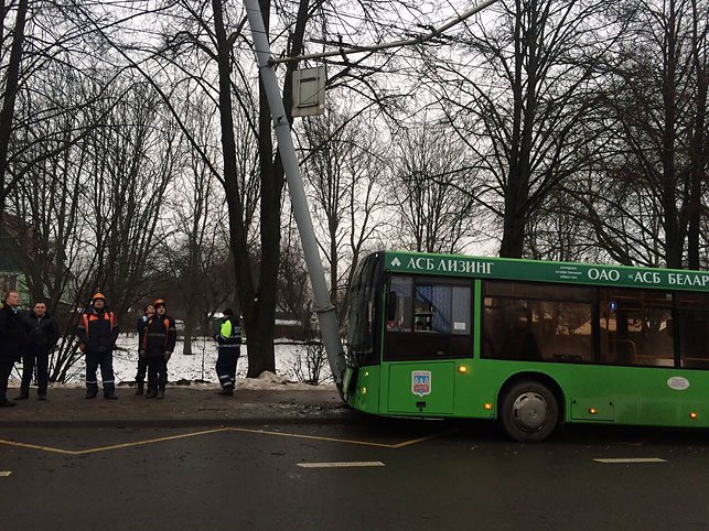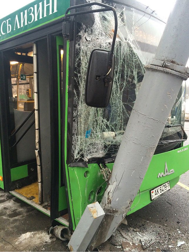 В Минске рейсовый автобус врезался в столб, в результате чего было госпитализировано шесть человек.