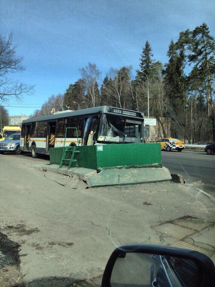 Авария произошла 25 марта в Зеленограде - рейсовый автобус врезался в вентиляционную шахту.