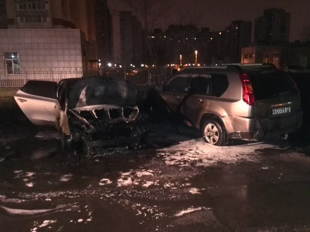 В Петербурге за одну ночь в четырех пожарах пострадали девять автомобилей