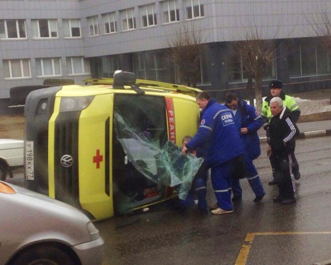 В Москве после ДТП перевернулась машина «скорой помощи»