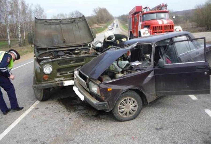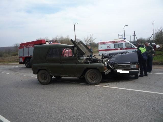 На дороге произошло столкновение автомобилей ВАЗ-2107 и УАЗ-69. В результате ДТП машины получили сильные повреждение.