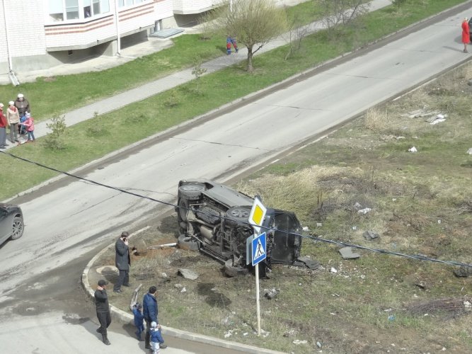 Авария произошла сегодня, 20 апреля, в 12:05 на улице Озерная в Великом Новгороде. После столкновения двух автомобилей один из них перевернулся.