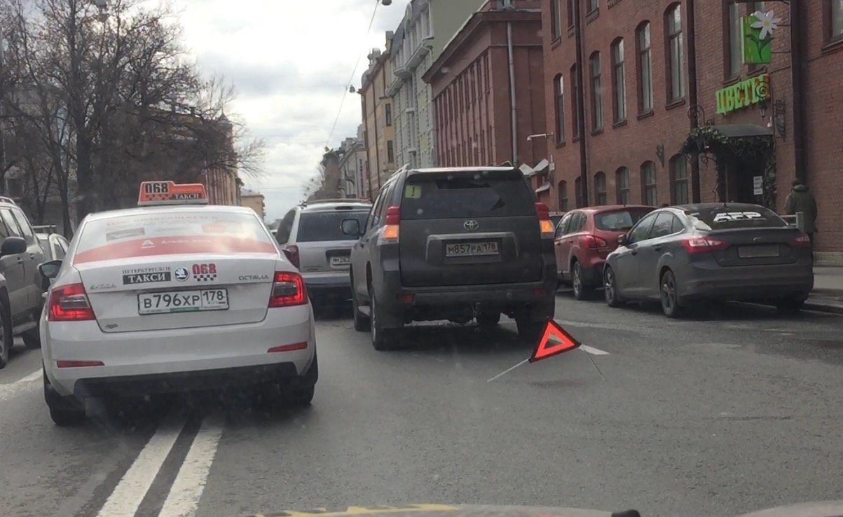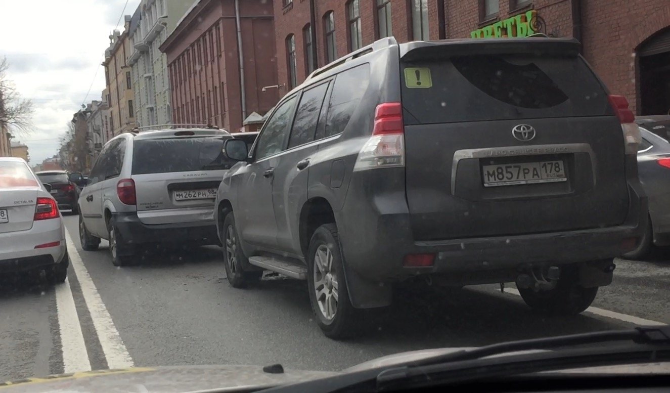 Toyota Land Cruiser с значком "Неопытный водитель" врезался в минивэн на Большом Сампсоньевском проспекте в Петербурге