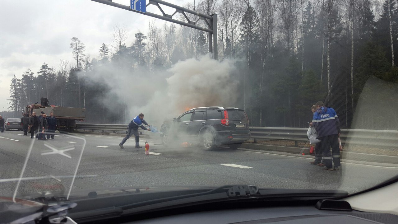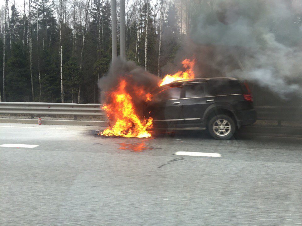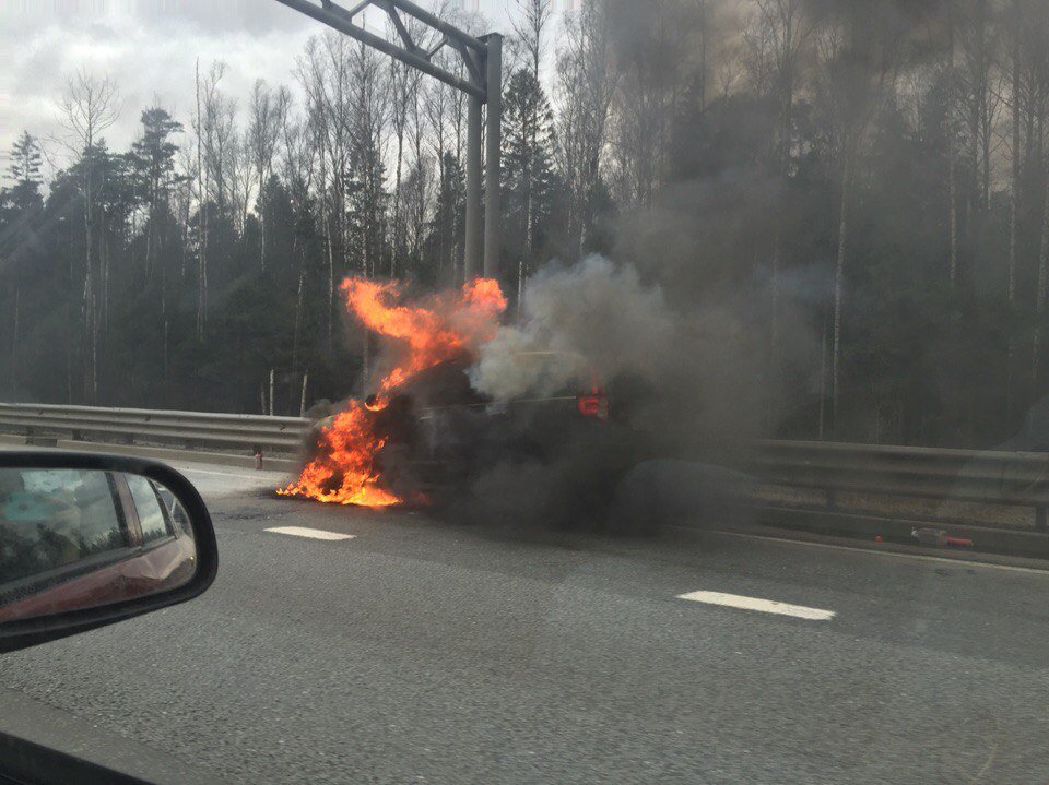 Как сообщают свидетели происшествия в группе «ДТП и ЧП / Санкт-Петербург», автомобиль находился на правой полосе и горел настолько сильно, что наблюдающие не рискнули тушить его штатными огнетушителями.