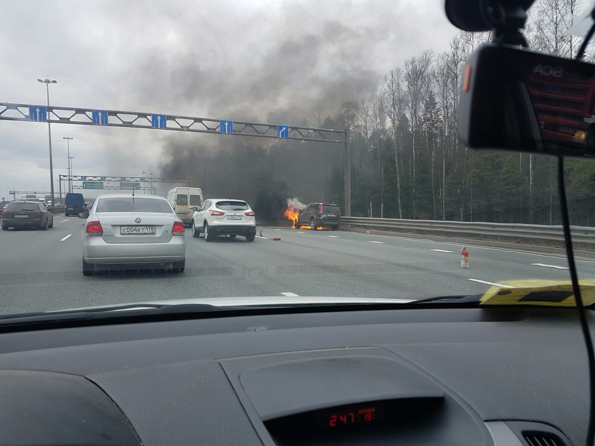 Сегодня в Петербурге на внутренней стороне КАДа, перед съездом на Косыгина, сгорел Hoover. В результате ЧП на КАД возникла пробка.