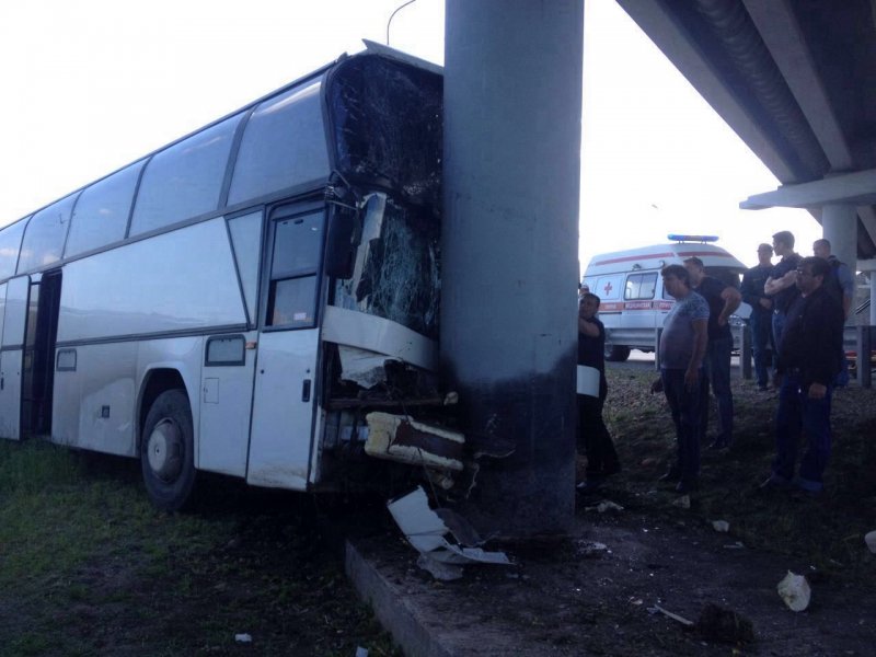 По предварительным данным, рейсовый автобус, следовавший из Краснодара в Ростов-на-Дону, врезался в опору моста. В момент аварии в салоне не было пассажиров - только два водителя. Один из них в результате столкновения был травмирован.