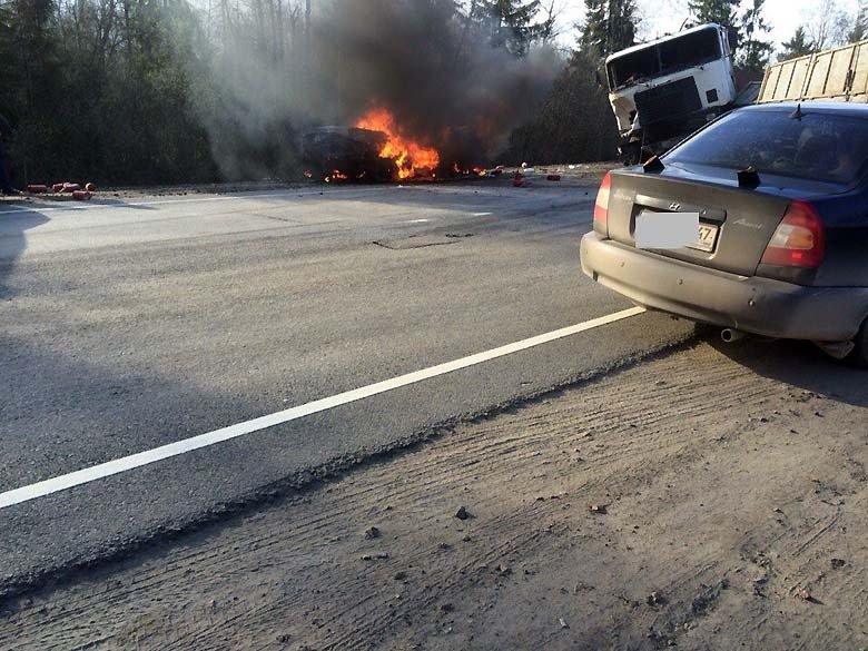 В ДТП с фурой под Лугой два человека сгорели заживо в машине