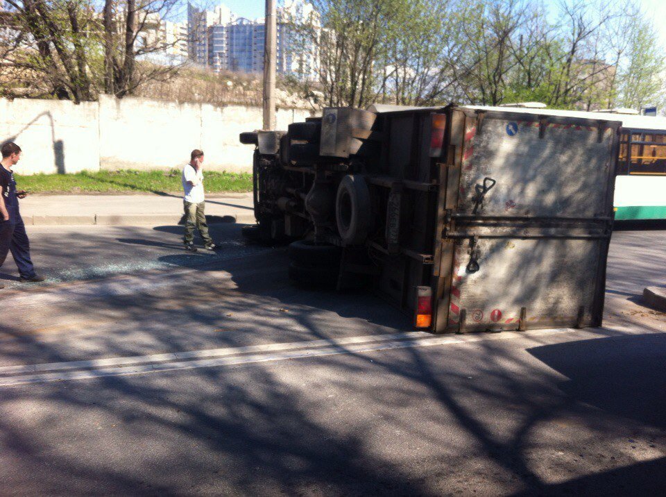 Перевернувшийся грузовик блокировал движение на Полюстровском проспекте