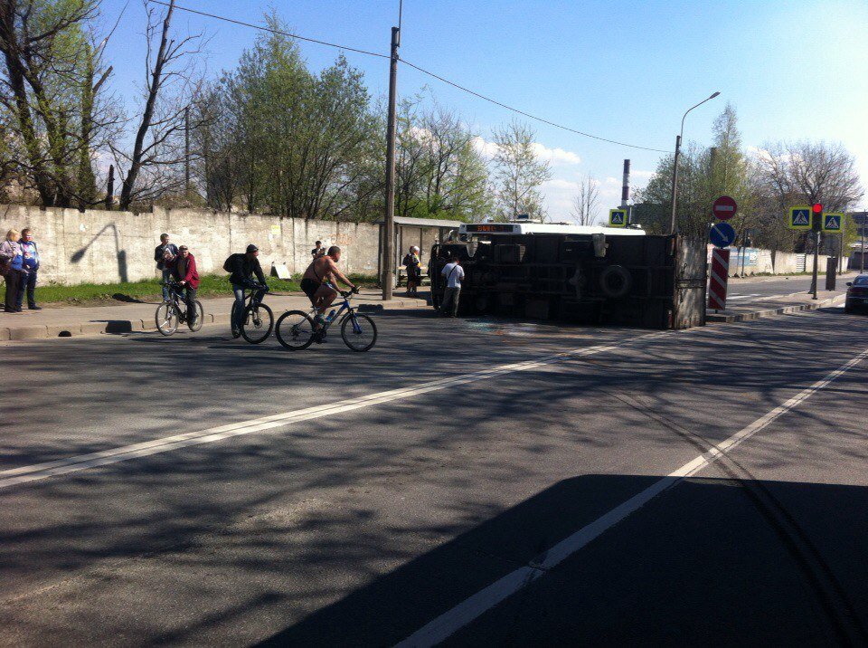 Авария произошла в Санкт-Петербурге 3 мая около 14:40 на Полюстровском проспекте. На дороге перевернулся фургон.